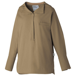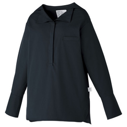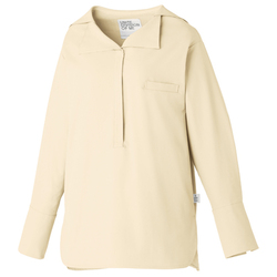 セーラーカラーが特徴の落ち着いたクラシカルな印象のシャツスタイル。比翼仕立てに左胸ポケットでスッキリとした印象です。タフなだけでなく軽い素材感でケアも簡単!制菌はもちろん、透け防止・UVカット機能も持ち合わせています。