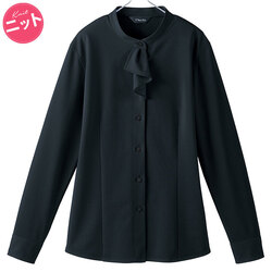 634221 長袖スタンドカラーフリルブラウス フルダルトリコットノワール】