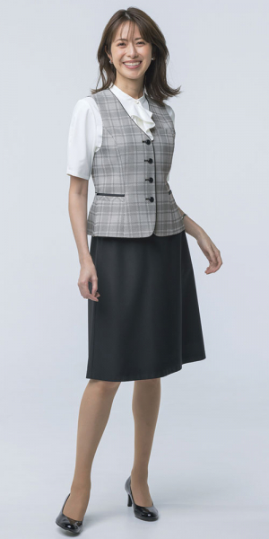 ○ 後ろ姿まで美しく。上品チェック柄の快適ニットベスト「Ciel knit」